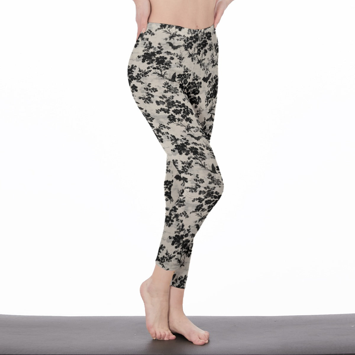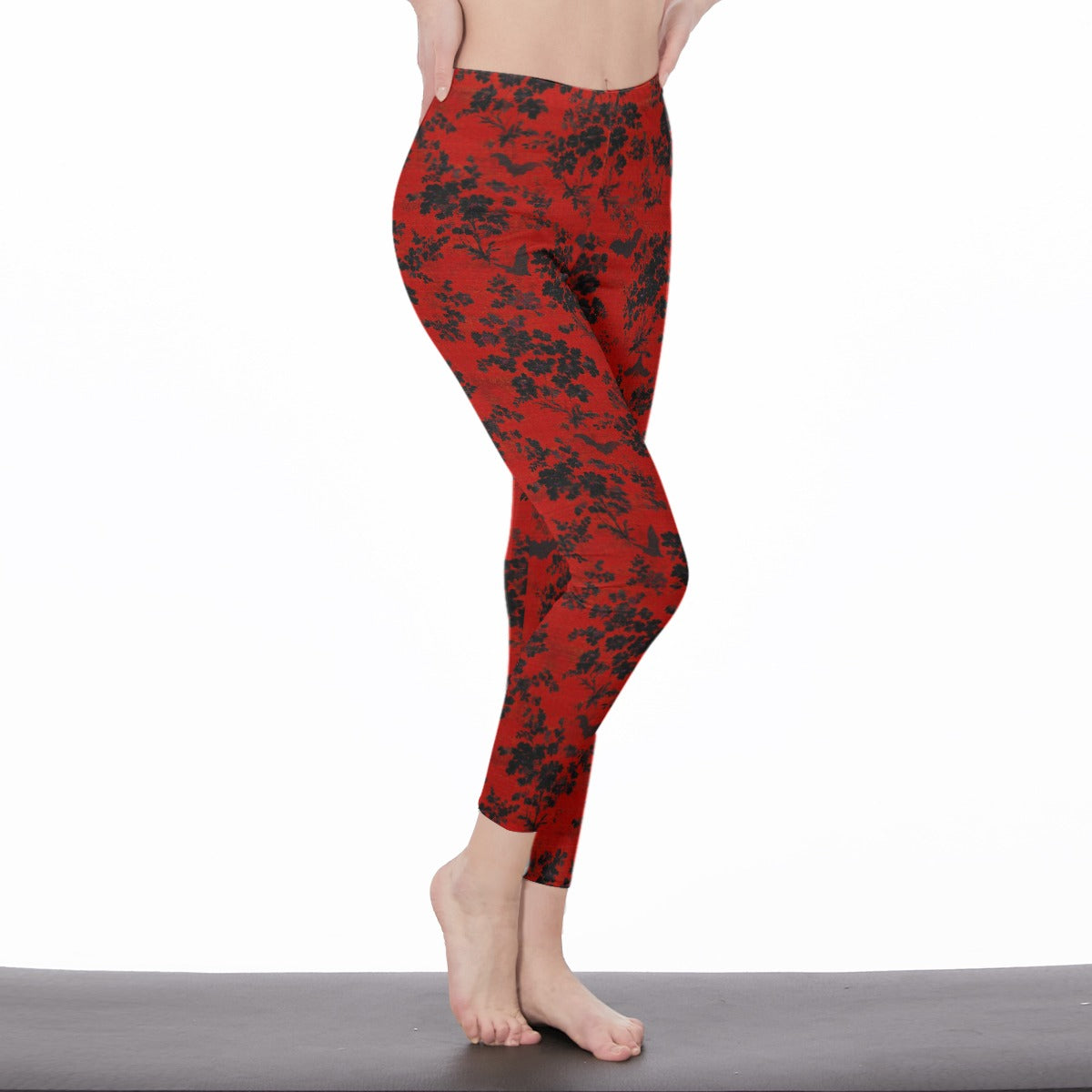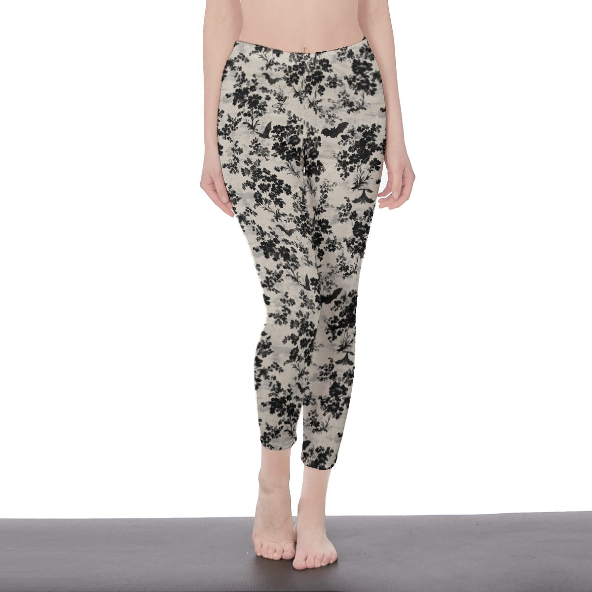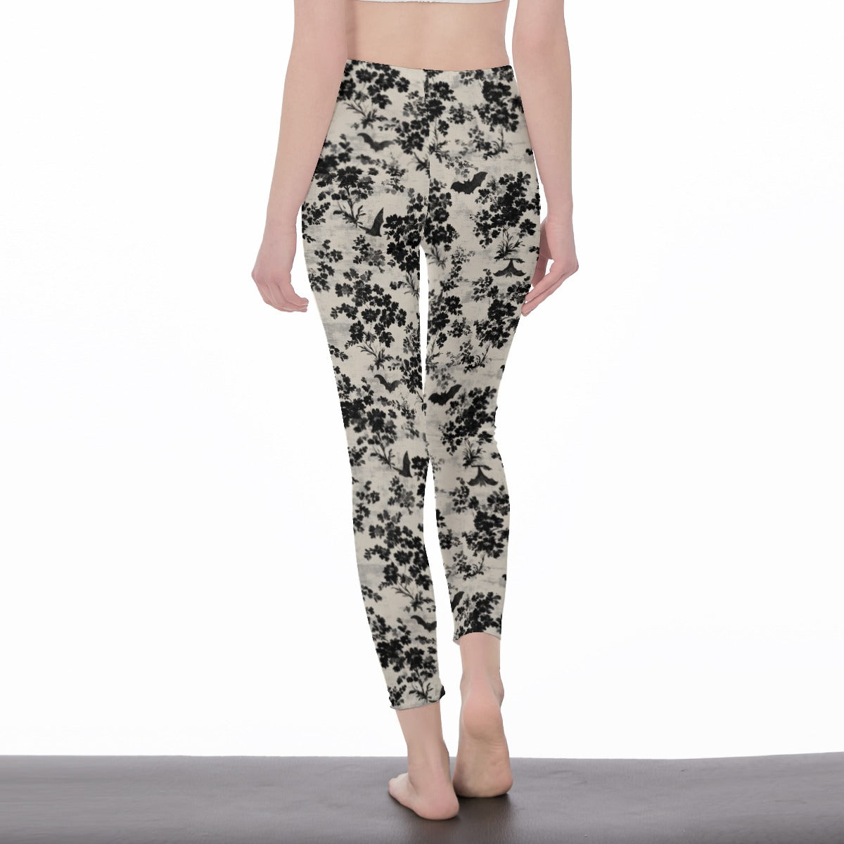 This crop top and leggings combo features a bold damask-inspired bat-and-floral print, and comes in two striking colorways: blood red with jet black detailing, and bone white with shadowy black floral and bat accents.