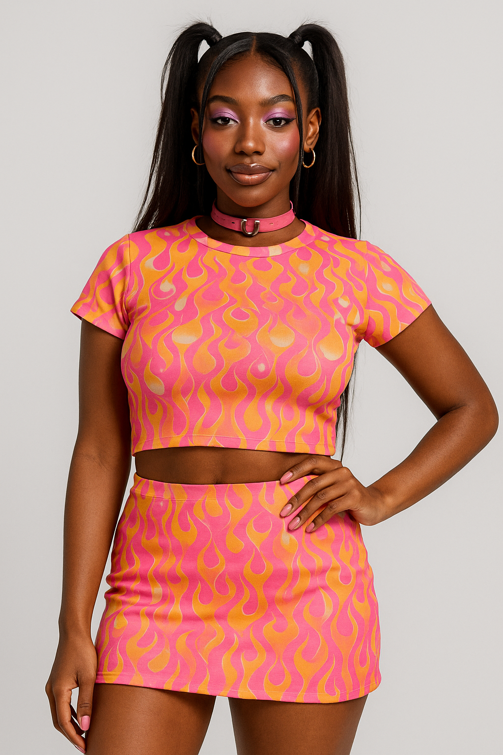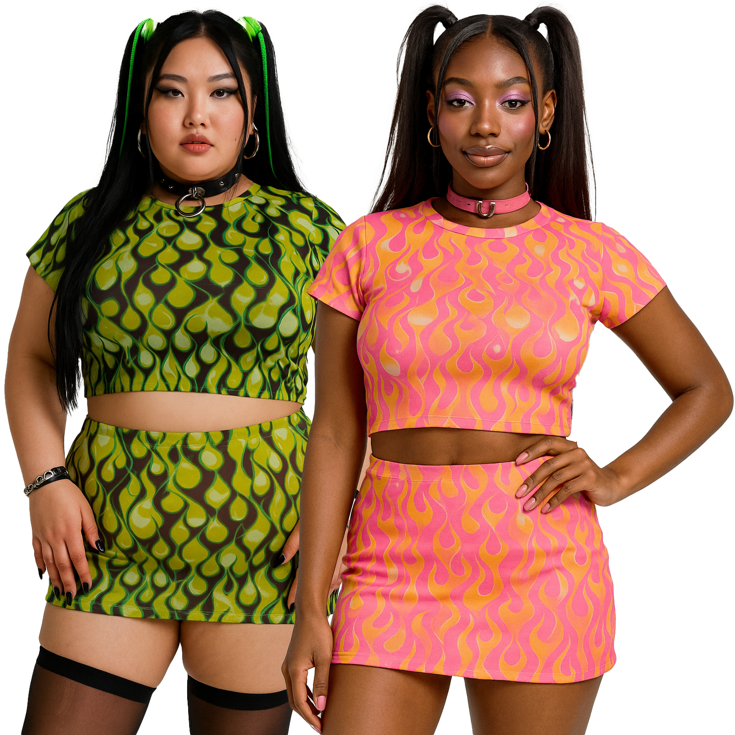 In Flames Crop Top and Micro Skirt Set